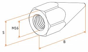 Размеры: В=50 мм, S=22 мм, резьба внутренняя М16.