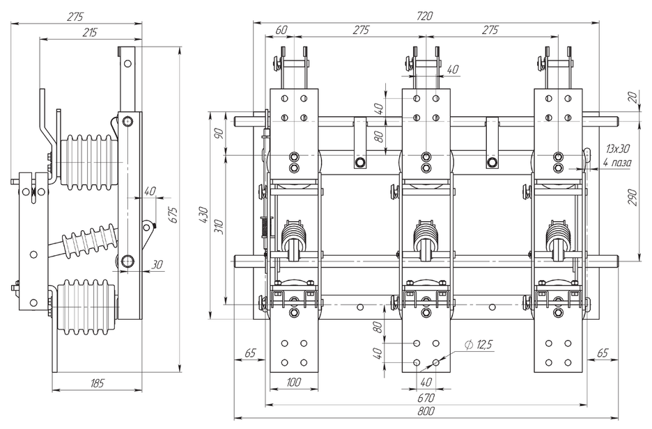 Габаритные размеры, чертеж разъединителя РВЗ-10/2000 I УХЛ2