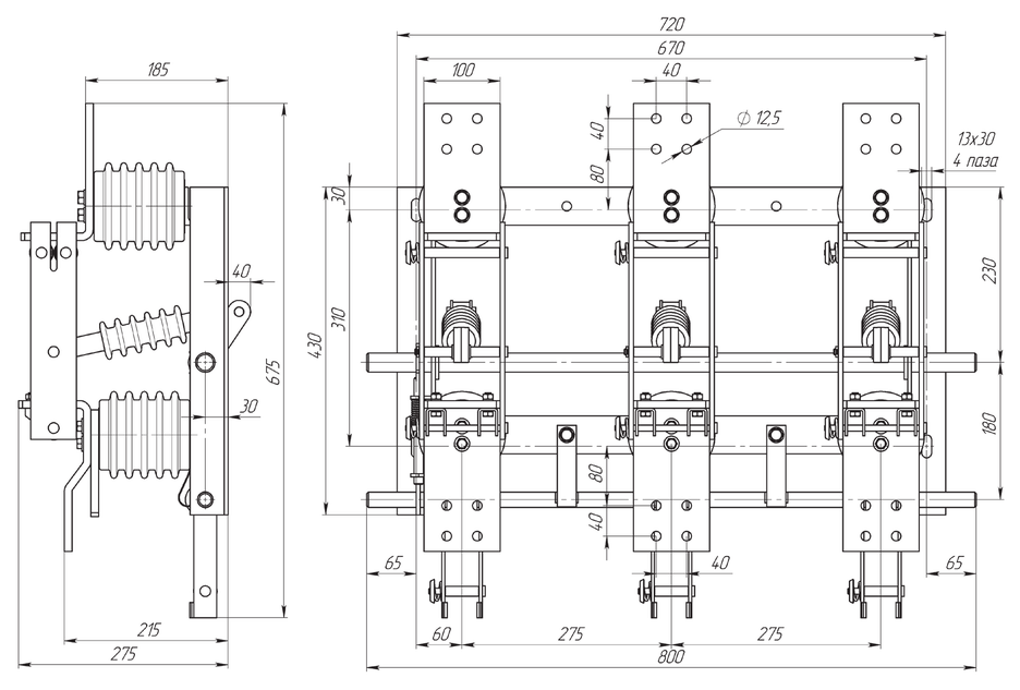 Габаритные размеры, чертеж разъединителя РВЗ-10/2000 II УХЛ2